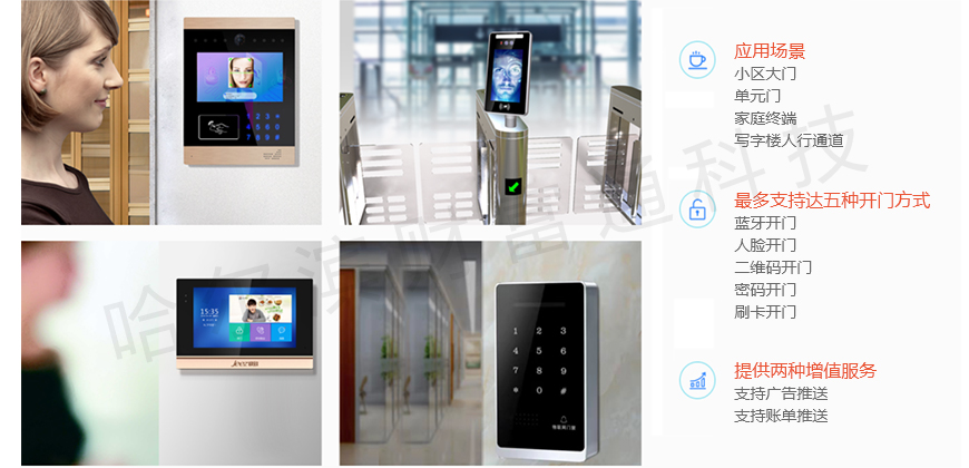 业主具有多种开门方式:①打开小程序点击“一键开门”即可开门;②通过物业处发行的门禁卡刷卡开门,门禁卡由物业管理处登记发放③业主将脸部靠近人脸识别摄像头即可“刷脸”开门,人脸识别信息通过小程序录入;④访客邀约:通过小程序生成的密码或二维码扫码开门,仅限一次使用,2分钟后失效。